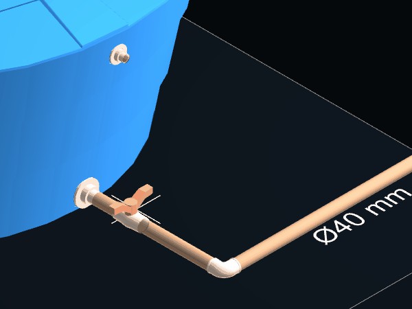As tubulações deverão ser ligadas. Uma peça de conexão Tê de redução 40x25 mm deverá ser criada no ponto de interseção entre as duas tubulações.