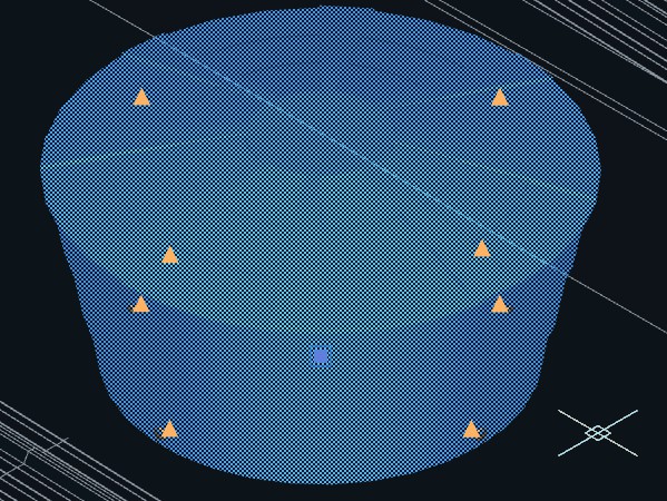 1. Selecione o Hidrômetro que acabou de inserir no projeto. Marcações triangulares em laranja deverão indicar os pontos de conexão disponíveis para início das tubulações;