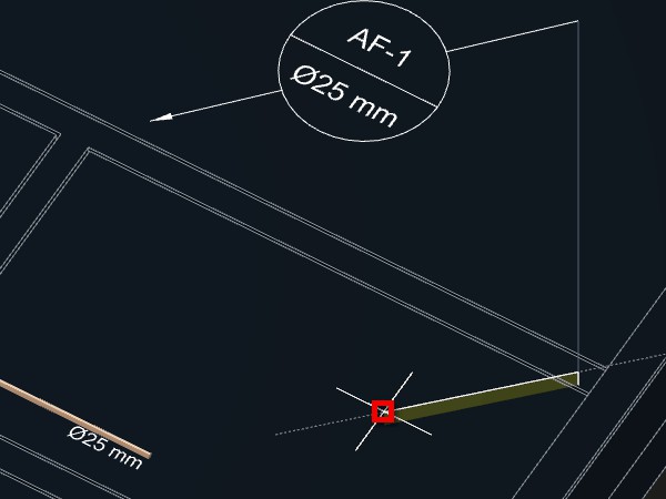 Caso indique um ponto próximo da tubulação, a indicação será desenhada acompanhando o ângulo do trecho da tubulação no ponto indicado. Se o ponto for a uma certa distância da tubulação, será criada uma linha de chamada para a indicação.