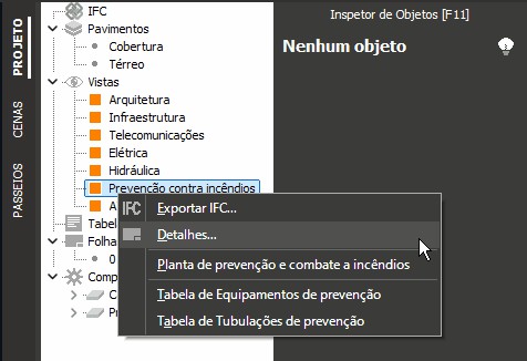 - Clique sobre a "Planta de prevenção e combate a incêndios" e mantendo o botão do mouse pressionado arraste para o projeto. A planta será gerada;