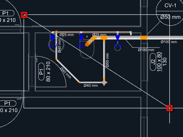 Indique os pontos necessários para criar o caminho até onde deseja levar a tubulação;