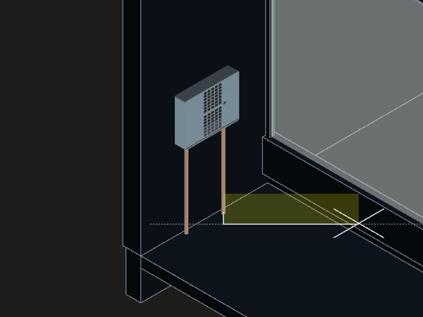 4. Aproxime o cursor do mouse da parede (ou linha de referência se for um desenho 2D importado) onde pretende inserir o componente;