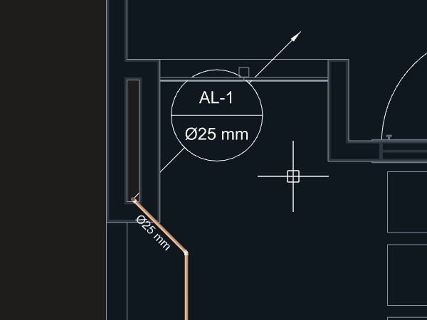A indicação da tubulação será feita inicialmente pelo ponto central da projeção em planta da tubulação. No entanto, em alguns casos, pode ser necessário reposicionar para evitar sobreposição com outros elementos, textos ou indicações do projeto.