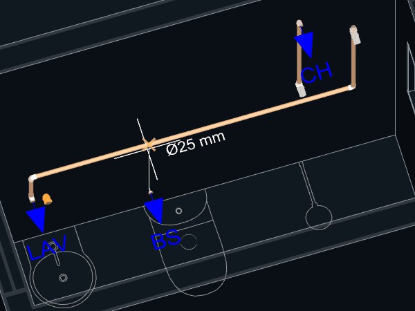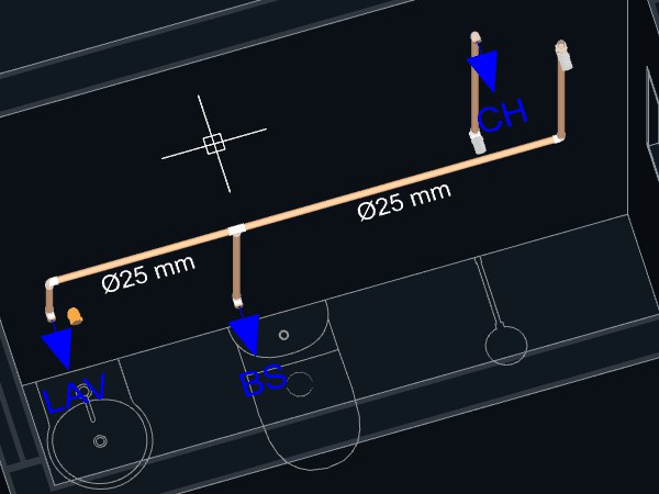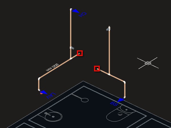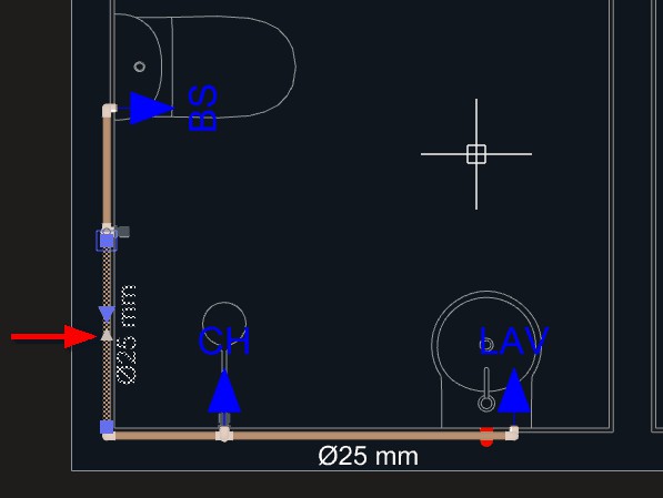 10. Aproxime o mouse da tubulação lançada anteriormente entre o Lavatório e o Registro;