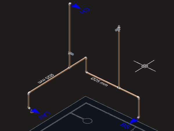 • Para criar um detalhe isométrico de distribuição de água: