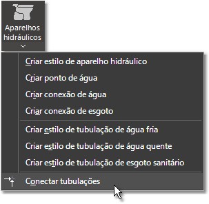 Clique sobre a seta do ícone Aparelhos hidráulicos e no menu selecione o item Conectar tubulações;