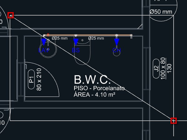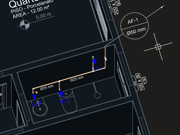 Depois de lançar todos os aparelhos hidráulicos necessários ao projeto, podemos iniciar o lançamento dos tubos e conexões de água.