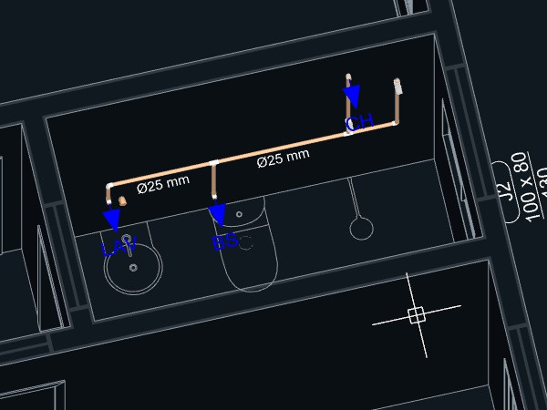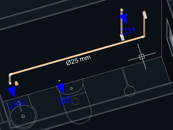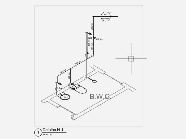 Depois de adicionar todos os aparelhos hidráulicos e lançar todas as tubulações necessárias para conexão, podemos iniciar a definição dos desenhos para as pranchas do projeto de Instalações hidráulicas.