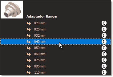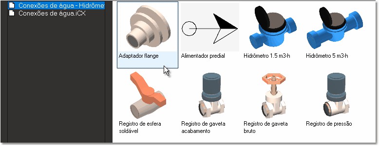 3. Na coleção de "Conexões de água - Hidrômetros e registros", selecione o componente "Adaptador flange" com um duplo clique com o mouse;
