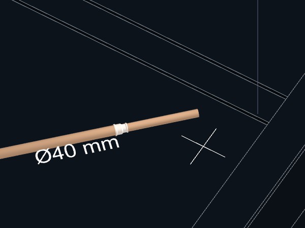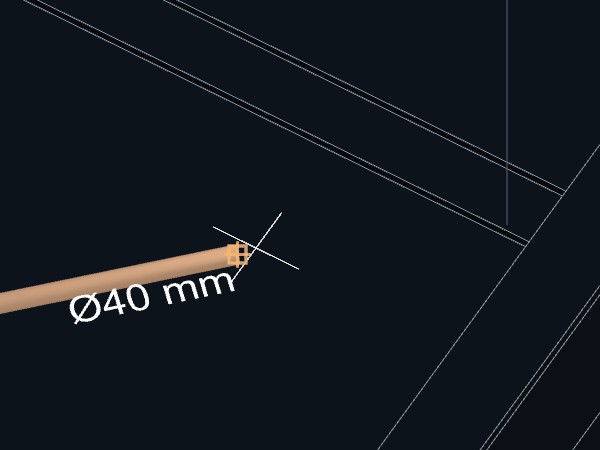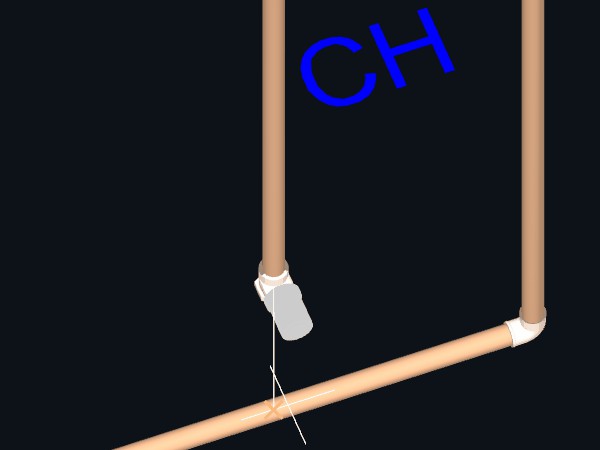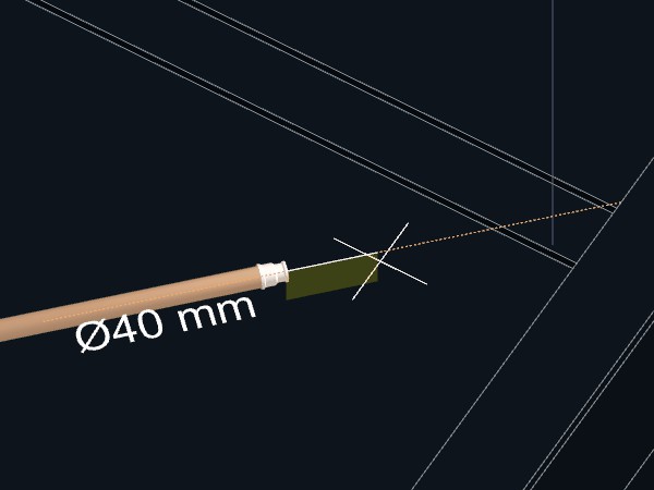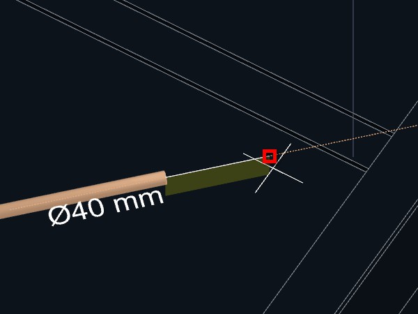 4. Aproxime o cursor do mouse do ponto final da tubulação que pretende reduzir o diâmetro;