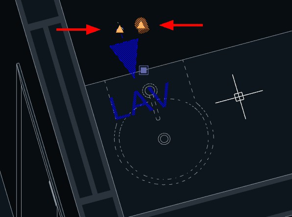 1. Selecione o Hidrômetro que acabou de inserir no projeto. Marcações triangulares em laranja deverão indicar os pontos de conexão disponíveis para início das tubulações;