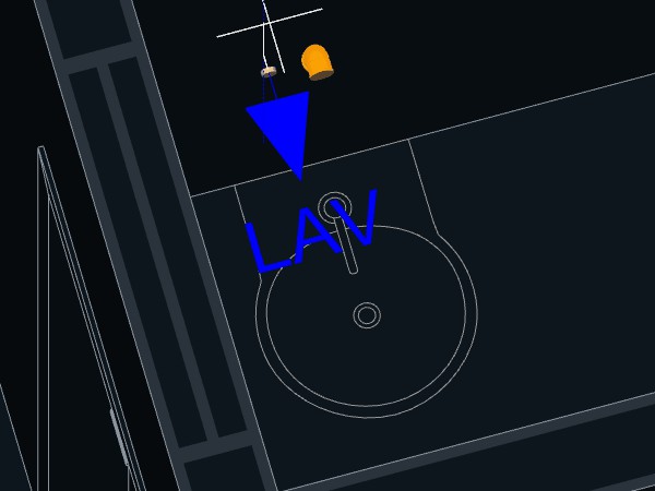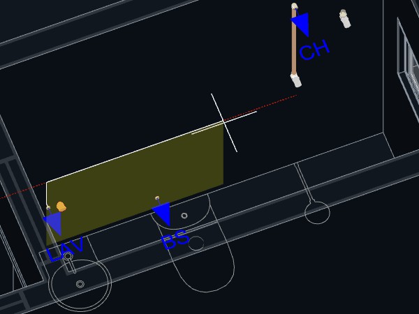 2. Selecione o Lavatório. Marcações triangulares em laranja deverão indicar os pontos de conexão disponíveis para início das tubulações;