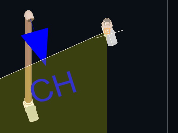 7. Indique um ponto qualquer na direção ao ponto final da tubulação que pretender conectar. Lembrando que as tubulações devem estar alinhadas com diferença angular de 45º ou 90º entre si. Para isso, deixe sempre o Esquadro de 45º localizado na Barra de estado ativado;