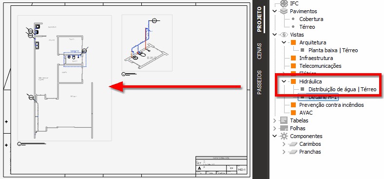 Adicionando os desenhos as pranchas do projeto hidráulico