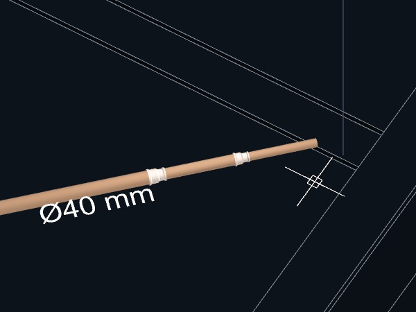 10. Quando o assistente Alinhar por objetos <F3> indicar com o sinal a captura de uma tubulação que pode ser dividida, confirme clicando com o botão do mouse.