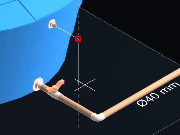 5. Quando o assistente Alinhar por objetos <F3> indicar com o sinal a captura da tubulação, confirme clicando com o botão do mouse;