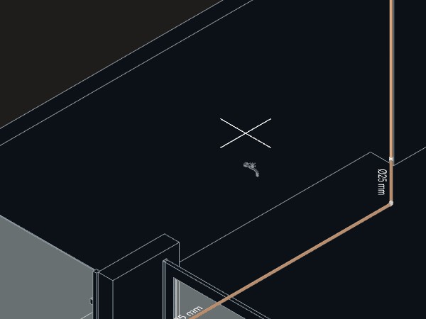 8. Caso passe uma tubulação próxima pelo piso, como por exemplo o ramal de alimentação, aproxime o cursor do mouse da tubulação.